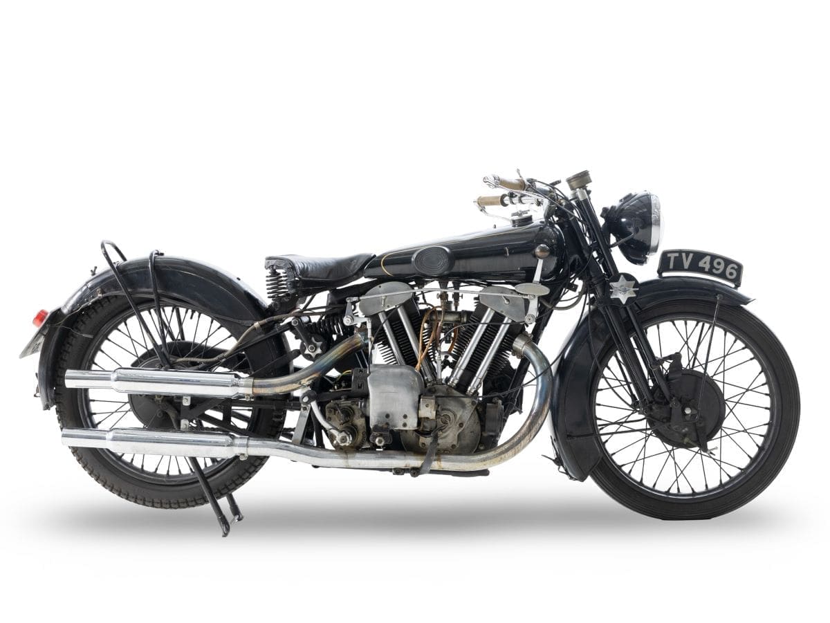 - 1929 Brough Superior 995cc SS100 ‘JTOR’: Formerly belonging to Kenneth Neve OBE and offered from the estate of the late Alain de Cadenet, this matching numbers SS100 is fitted with the famed ‘JTOR’ engine. Estimate: £160,000 – 200,000.