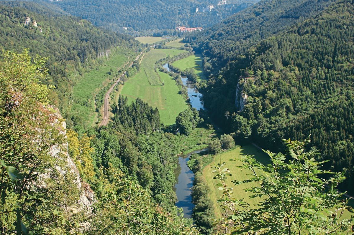 After a couple of days back at Cousin Sepi’s farm at Olching, our next step was to head futher west to Bergheim in Alsace, somewhere else in Europe which has seen national borders ebb and flow. We had an incentive, to accept an open invitation from Joe Dietche, who met Rich whilst working in Washington State on a dam project. Wolfe rejoined us and with a light mist covering the fields the three of us set off for France. Wolfe guided us along lovely country roads which were narrow, well paved and raised above the level of surrounding fields. They lacked the hedgerows of typical UK lanes, but the views benefitted. That night, after riding through the Black Forest, we camped by the Donau (Danube) at Hausen Im Tal.